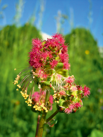 Die Pimpinelle (Sanguisorba minor), auch Kleiner Wiesenknopf genannt, ist in fast ganz Mittel- und Südeuropa zu finden. Die mehrjährige Pflanze aus der Familie der Doldenblütler wächst in erster Linie auf Mager- und Kalkrasen, in trockenen und lichten Gebüschen, auf Geröllhalden und an Wegrändern.
