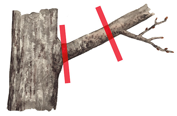 Beim Entfernen von Ästen (ganz oder teilweise) haben wir immer drei Möglichkeiten: